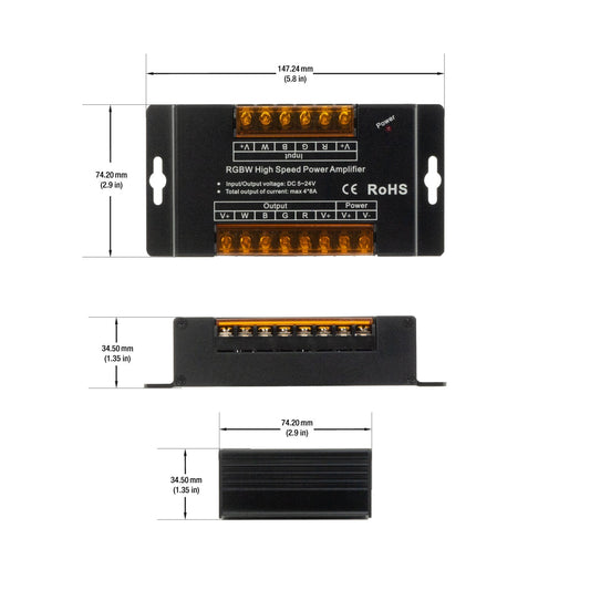 RGBW LED Controller Amplifier High Speed Power 5-24V 8A/Channel for RGBW lights