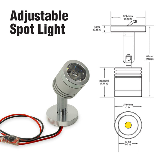 1 x 1W Adjustable Spot Light 12-24V - 3000K (Warm White)