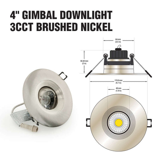4 inch Round White Gimbal Dimmable Recessed LED Downlight / Ceiling Light 120V 8W 3CCT(3K, 4K, 5K), GL34