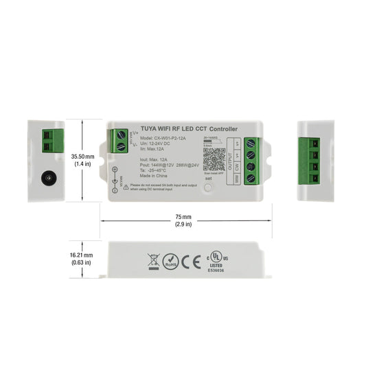 CX-W01-P2-12A-CCT RF LED Dimmer & CCT Receiver 12-24V DC 2.4G Tuya App