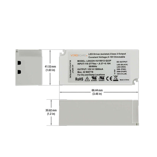 Dimmable Constant Voltage LED Driver 0-10V 12V 22W - LD022H-VU18012-Q22P 0-10V