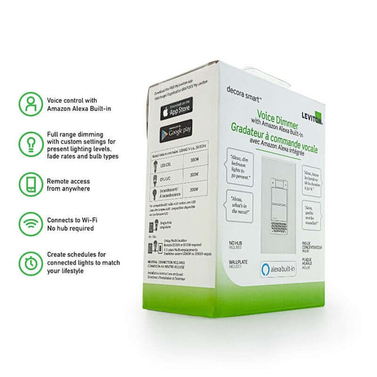 Leviton Decora Smart Voice LED Dimmer with Amazon Alexa Built-In 120V 300W DWVAA