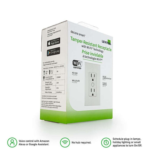 Leviton Decora Smart Tamper-Resistant Outlet Receptacle with Wi-Fi Technology 120V DW15R