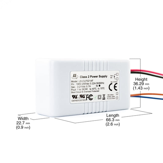 Non-Dimmable Constant Current LED Driver 700mA 3-21V 1-3X3W max, ES LD-CU7021AFRegular price $26.00 USDRegular priceUnit price / per-