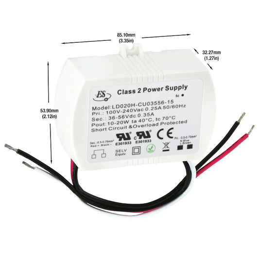 Non-Dimmable Constant Current LED Driver - 350mA 36-56V 20W, ES LD020H-CU03556-15Regular price $53.00 USDRegular priceUnit price / per-