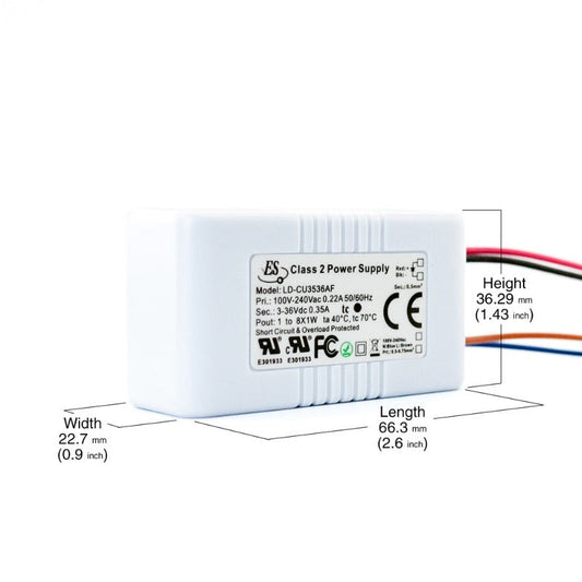 Non-Dimmable Constant Current LED Driver - 350mA 3-36V 1-8W max, ES LD-CU3536AFRegular price $19.00 USDRegular priceUnit price / per-
