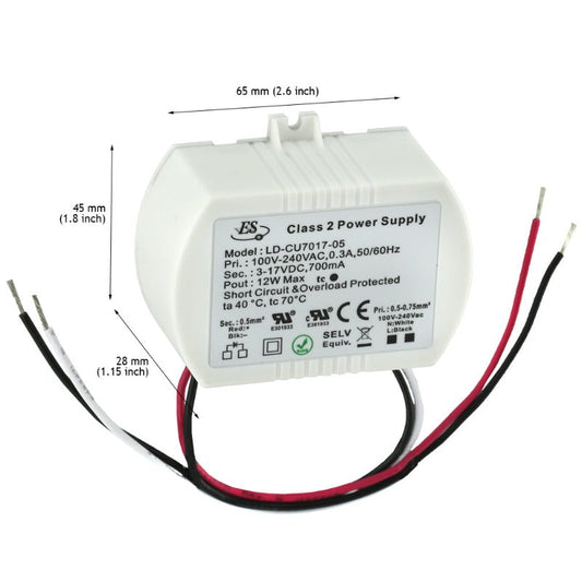Non-Dimmable Constant Current LED Driver 700mA 3-17V 12W, ES LD-CU7017-05Regular price $42.00 USDRegular priceUnit price / per-
