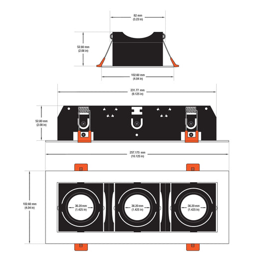 3.5 inch Square White Low Voltage IC Rated Recessed Downlight MR16 LED Light Fixture, VBD-MTR-75T