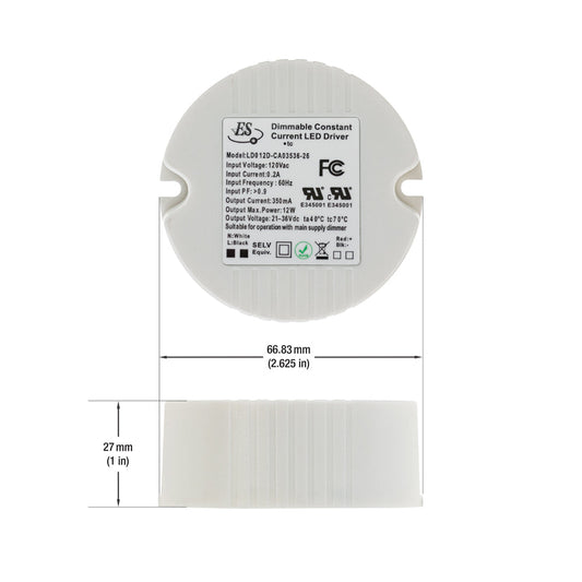 Constant Current LED Driver 350mA 21-36V 12W max, ES LD012D-CA03536-26