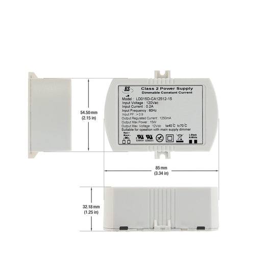 Constant Current LED Driver 1250mA 12V 15W max, ES LD015D-CA12512-15