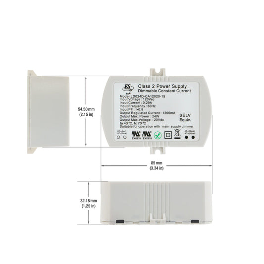 Constant Current LED Driver 1200mA 20V 24W, ES LD024D-CA12020-15