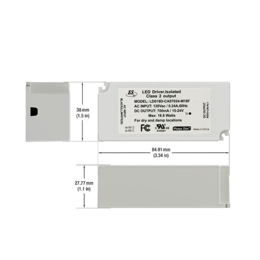 Constant Current LED Driver 700mA 15-24V 16.8W, ES LD018D-CU07024-M18F