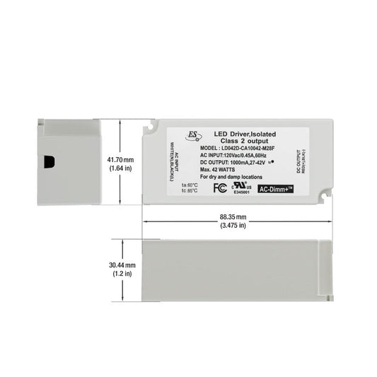 Constant Current LED Driver - 1000mA 27-42V 42W, ES LD042D-CA10042-M28F