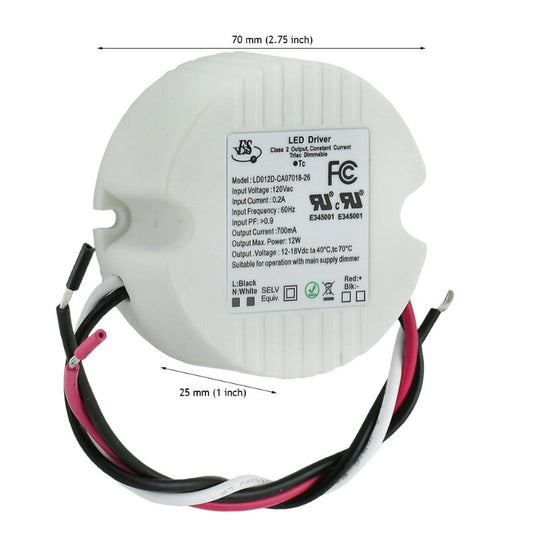 Constant Current LED Driver - 700mA 12-18V 12W max ES LD012D-CA07018-26