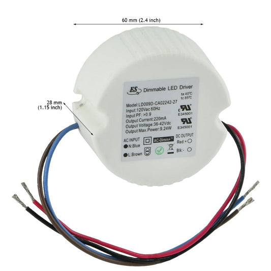 Constant Current LED Driver 220mA 36-42V 9.24W max, ES LD009D-CA02242-27