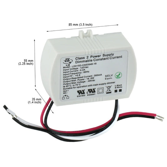 Constant Current LED Driver 350mA 48V 16.8W max, ES LD015D-CA03548-15