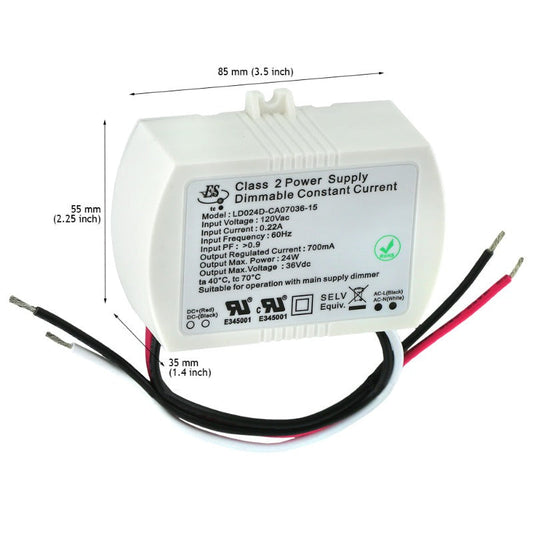 Constant Current LED Driver 700mA 36V 24W, ES LD024D-CA07036-15