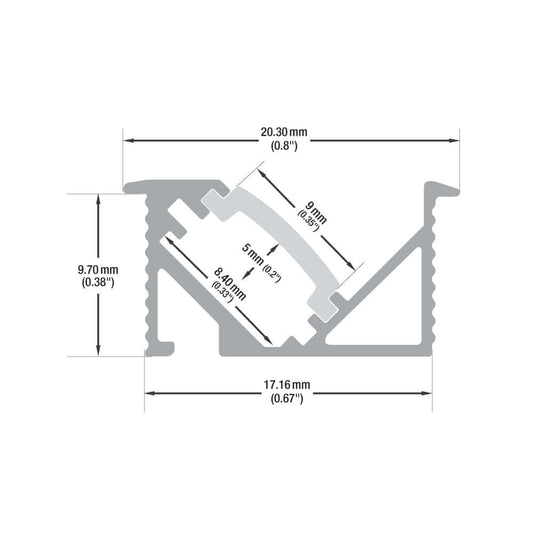 Corner Mount Curve Linear Aluminum LED Channel for LED Strips 2Meters(6.5ft) VBD-CH-C3-2