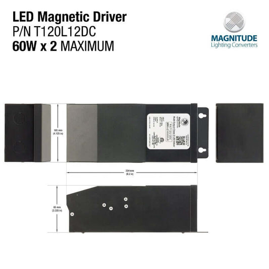 Magnitude Magnetic T120L 12DC Dimmable Constant Voltage LED Driver, 12V 2x60W