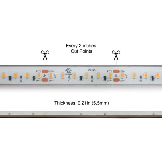 Custom cut Outdoor COB LED Strip Light - 24V 2(w/ft) 155(Lm/ft) CCT(2.7K, 3K, 3.5K, 4K, 5K) per foot