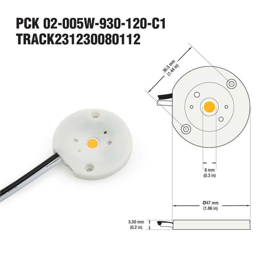 COB Paragon LED Module 120V 6W 3000K(Warm White), CDAC-20-30135-120V-30 with GPH48135AC LED Holder
