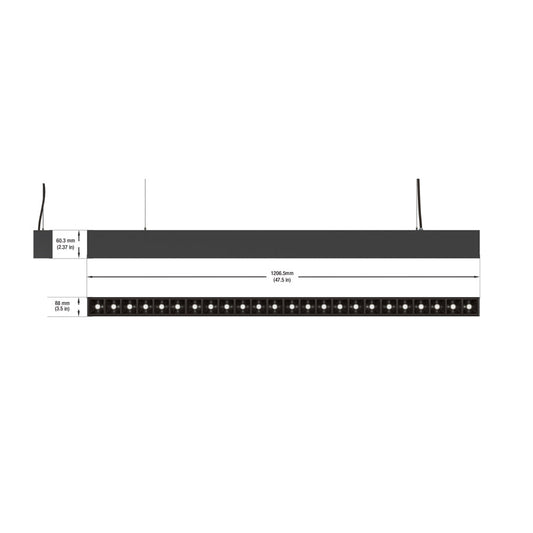 LED Low Glare Linear Pendant Light - 4ft 100-277V 38W 3000K(Warm White) Black