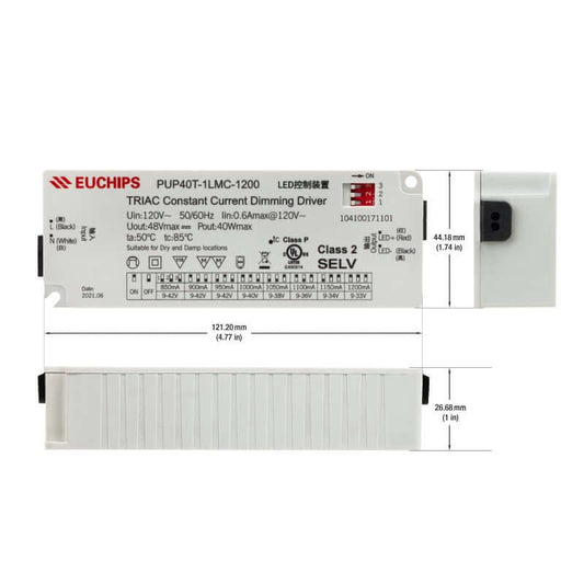 Selectable Constant Current 40W LED Driver Triac Dim PUP40T-1LMC-1200 , 120VAC 850 to 1200mA