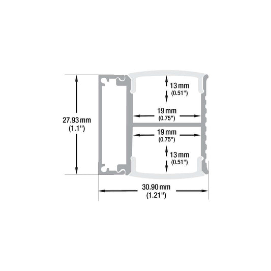 3 Linear Aluminum LED Channel for LED Strips 2Meters(6.5ft) VBD-CH-S3-2